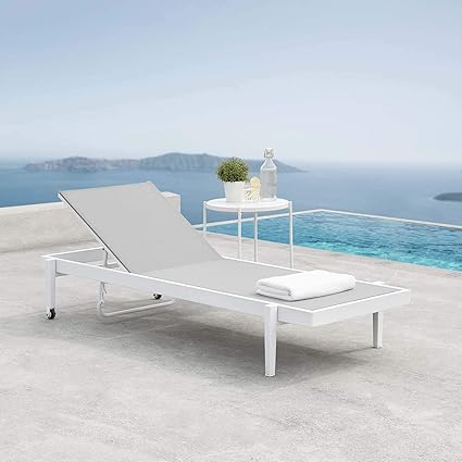 Amazon Com Modway Charleston Outdoor Patio Aluminum Metal Chaise Lounge Chair In White Gray Garden Outdoor