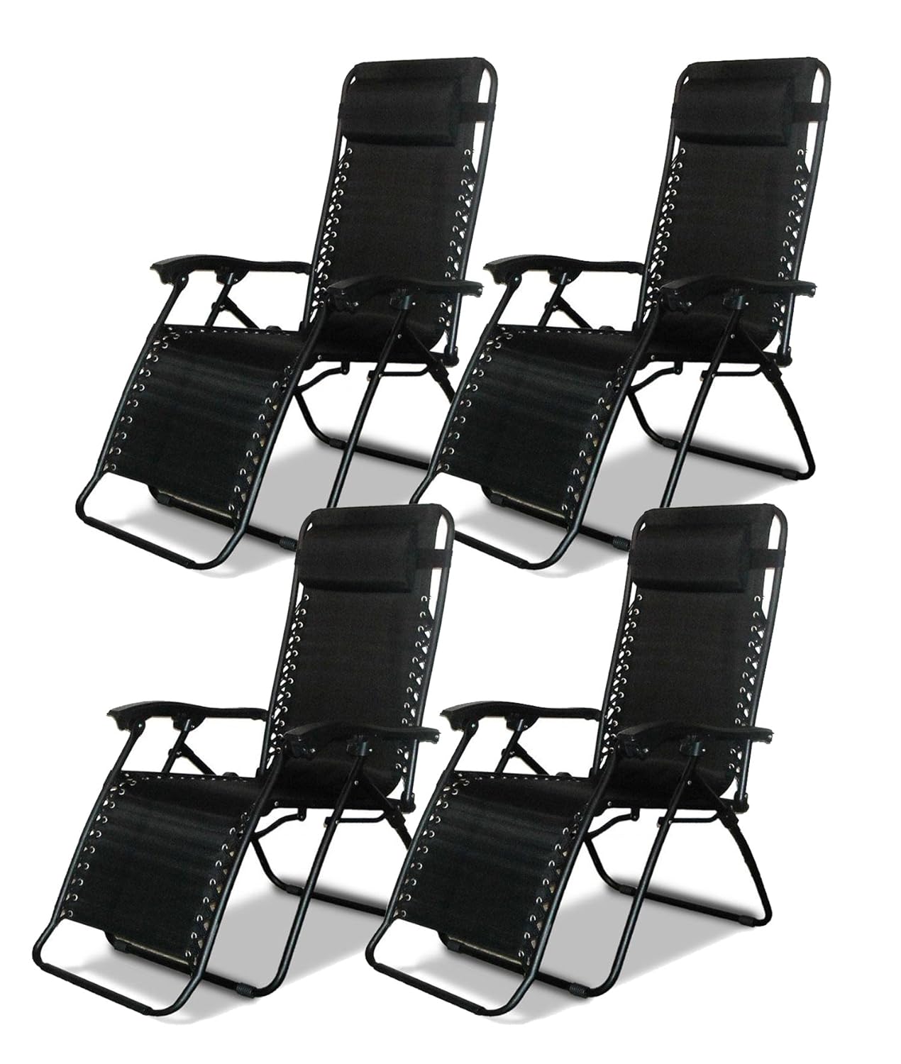 Dny textoline reclining garden chair beach sun lounger. Powder coated steel frame. Weather proof text line seat back and pillow. 2 X Black Textoline Reclining Chair Zero Gravity Garden Lounger.
